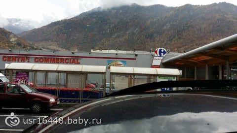 В общем, раз в неделю покидаю моих сладких на два часика, оставляя под зорким оком мужа и еду за покупками в Карфур. Это 20-минутный спуск с 1500 м над у.м. до 700 в городок с не очень красивым названием Мутье ( Moutiers ), но симпатичный на вид. Покажу в ближайшее время прогулку по нему.