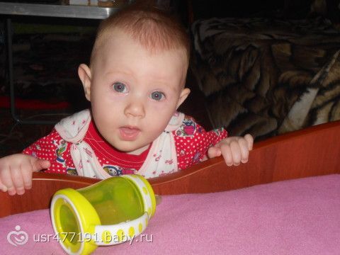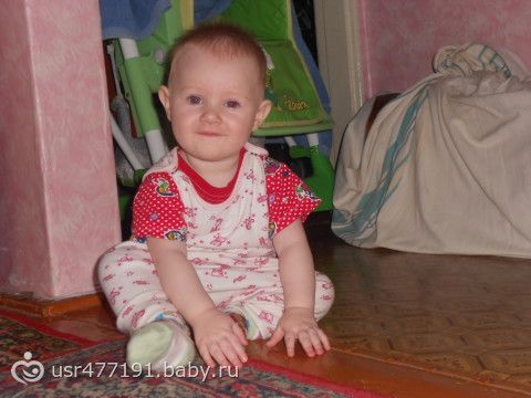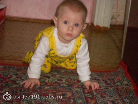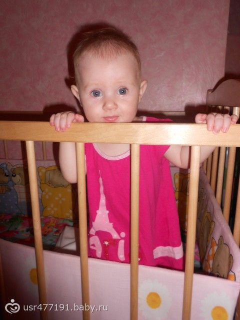 Стоит без поддержки секунд 10, ползает очень шустро.Говорит «ба-ба-ба. Ва-ва-ва» иногда «па-па».Делает сиплый голос и угорает.Визжит.Играет в ладушки, особенно начинает аплодировать под музыку.Катает мячики.Может достать из коробки игрушки.Разбирает пирамидку.Очень любит тряпочки.мешочки, веревочки.Пытается добраться до моего телефона.Встаёт возле всего, о что можно опереться.Садится с положения лёжа на спине.Любит смотреть мультики(папа иногда балует).Кажется понимает слово «нельзя», ну или реагирует на интонацию.Чаще играет так, что ударяет игрушки друг об друга.Смеётся над словом «есть»(папа фокусы показывает с появлением и исчезновением батарейки).Играет в прятки, прячется за гардиной.Началось «где поймаю, там и ем».Пытается найти сосок на ногах, руках, животе, иногда ловит грудь и начинает есть.Что ни день — то травма.Ударяется, падает.Начинает падать если голодная или хочет есть(голова перевешивать начинает).