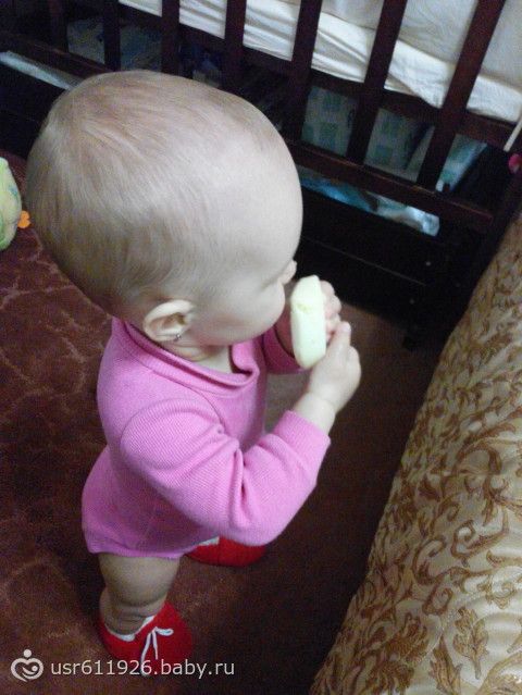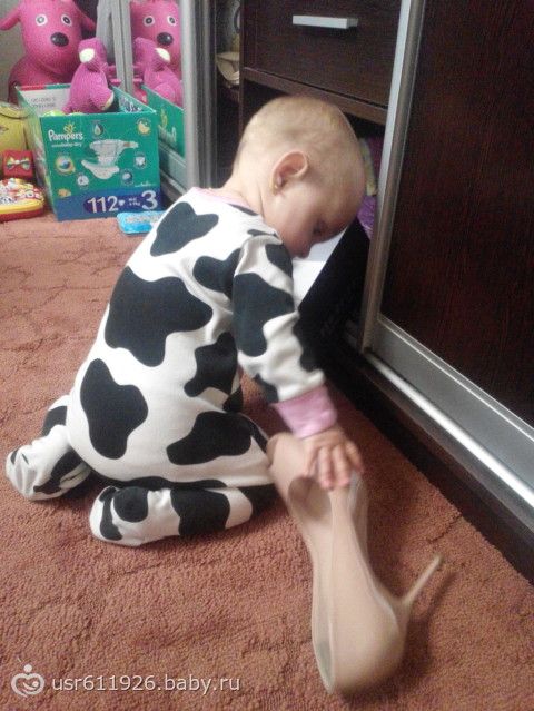 Девченки, в 8 месяцев пост не создавала, так как у нас были очень сильные капризы из-за зубов… итак немножко о наших умениях и достижениях))) в 8мес и недельку мы были 7750 и 70см, набрали всего 150г за месяц, но кушает очень хорошо! Начали есть уже и мяско и желточек перепелиный, кефирчик пьем. У нас наконец прорезались два зубика!!))) но судя по ее поведению, еще лезут… хотя смотрю на верхнюю десну-вроде еще далеко они… ну да как есть… сейчас очень много времени проводим на улице, ловим последние плюсы в температуре)))) говорит мама и папа, баба тоже вроде говорит, но это больше лепет… хотя иногда прям отчетливо говорит баба, когда видит бабушку...)))уже недели две как топает за одну ручку, а пару дней назад потопала самостоятельно, правда это только в ботиночках зимних, там широкая подошва и унее хорошая устойчивость получается..))) ну и иногда когда стоит возле чего-то, то просто бывает забывает что надо держаться и может постоять сама секунд до 10(это уже и без обуви)… сидеть… не сидим мы!))) точнее сидим, но не так как все(смотрите на фото)..))))