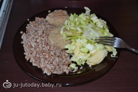 обед: гречка с котлетками и салатом(вчерашний)