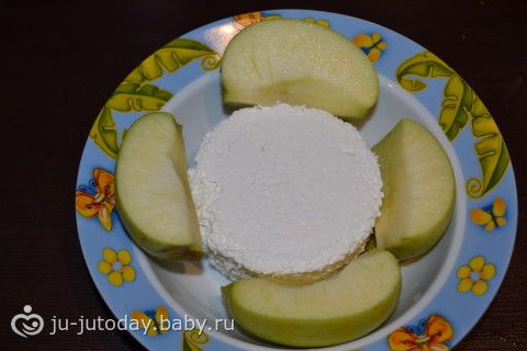 ужин: творог 3% с кефиром и яблоком