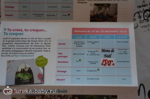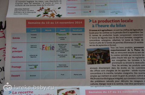 И ещё один день, а кто знает французский.тот может увеличить фото и сам узнать, что едят дети.Повторю, школа обычная, госсударственная.Платим только за обеды.В этом месяце 39 евро за месяц получается.