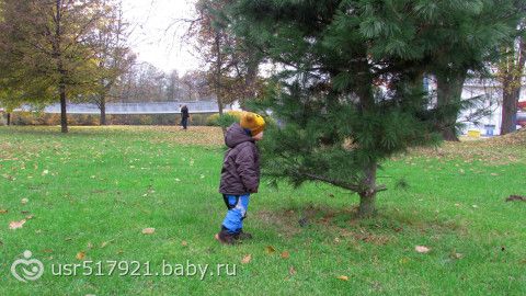 -Нюхает хвойное деревцо)) Все интересно в этом возрасте)