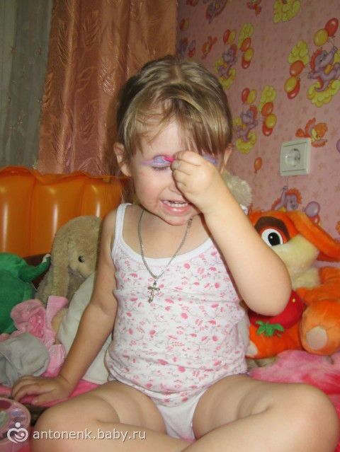 А я сразу поняла, что это тушь.))) У меня красотка помадой моей красится, бывает и тенями глазки мазюкает, пудрой щечки сдабривает. )) В общем как найдет мою косметичку, так развлекается. ))