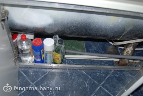 К концу работы машинки я зашла за чем то в ванную и обнаружила огромное море воды, помните я писала что отодвигая машинку выдернула шланг. Муж уже был дома и убирая вместе со мной воду сильно на меня ругался. В общем нам пришлось вытащить все из под ванной, т.к. вода и туда потекла. Получилось не запланированное расхламление хлама из под ванной. Зато мы повыкидывали кучу барахла и теперь у нас под ванной чистота и порядок )))