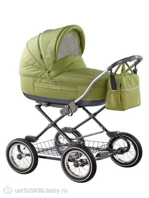 В комплекте с коляской идет «сумка для мамы», которая вешается на ручку рамы. Сумка имеет две ручки для переноски. Для жесткости сумка имеет съемную жесткую вставку в дно. Сумка на молнии. Имеет одно большое отделение, 2 кармашка и держатель бутылочки.