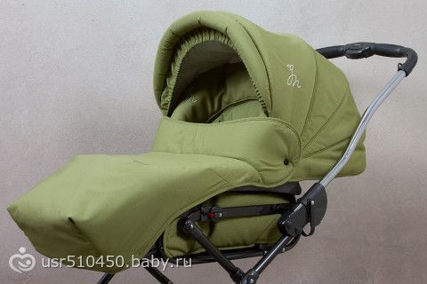 В комплекте идет утепленный чехом на ножки, который крепится на кнопками с двух сторон, позволяя откидывать накидку в одну из сторон. Капюшон для прогулочного блока подходит от спальной люльки.