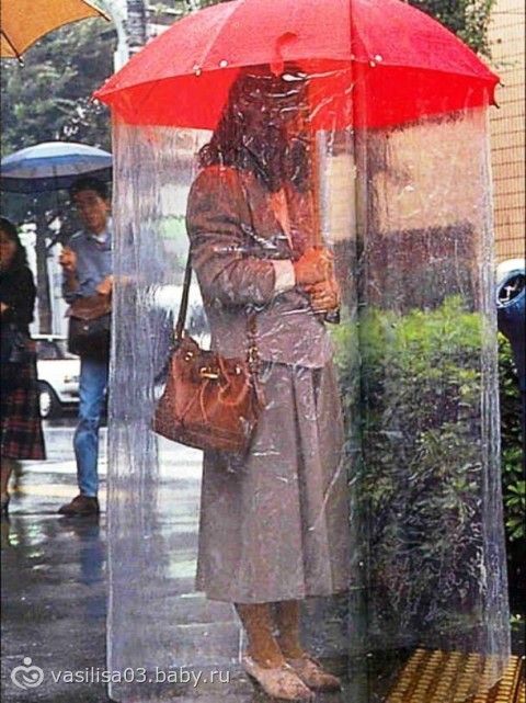 Когда к ливню присоединяется сильный ветер, обычный зонт бесполезен. Японцы решили эту проблему со свойственной им изобретательностью.