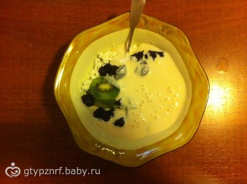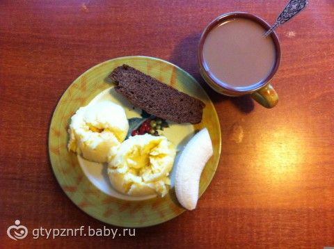 Завтрак: Кукурузная каша на молоко-воде, кекс ПП 3 муки (по рецепту Шоколадочки), 1/2 банана, кофе с молоком.