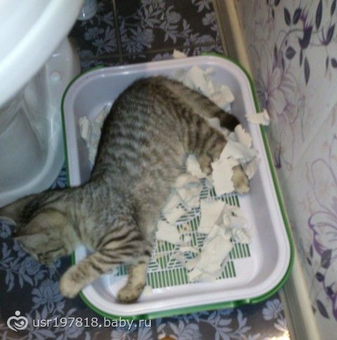 А мы вместо бумажек, своему купили наполнитель, древесный сначала пробовали, запаха нет! Что мне очень понравилось, сейчас типо песка взяли. Когда котя писает, он потом тот участок комочком, ну и какули тоже. Очень экономно получается! Ну это так… вдруг пригодится)))