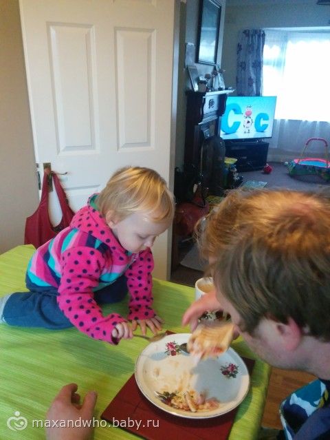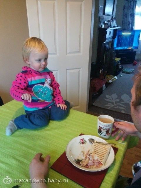 Лиза на второй фотке(папа за завтраком) «Папа ты что против???»))))