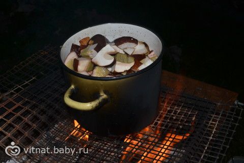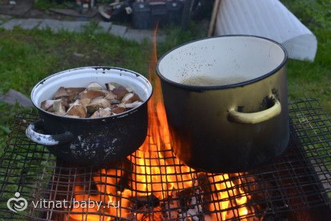 Ну вот, а как мы с Долины приехали, грибы я почистила, ну и начала готовить… И что бы вы думали? На плите розетка сгорела!!! Хорошо хоть не сама плита!!! И пришлось мне, как шизанутой, грибы на мангале, во дворе варить))) Такая ржака. Соседи, наверно думали, что я совсем спятила)))