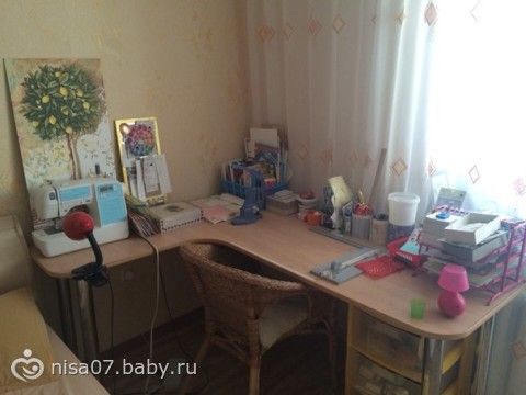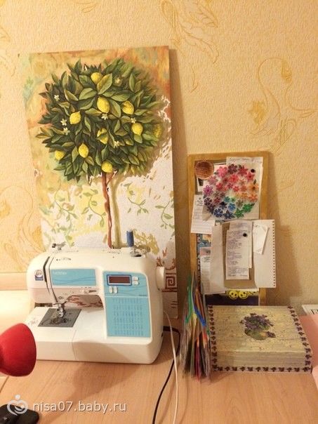 Итак слева от меня у меня стоит швейная машинка) очень удобно, то что стол угловой, не надо машинку доставать, убирать и т.д.) а так всегда под рукой) повернулся, прошил и дальше работаешь) ну и магнитная доска рядом, а сзади недорисованная картина по номерам) пока некогда(((( а так мечтаю ее повешать на кухне)