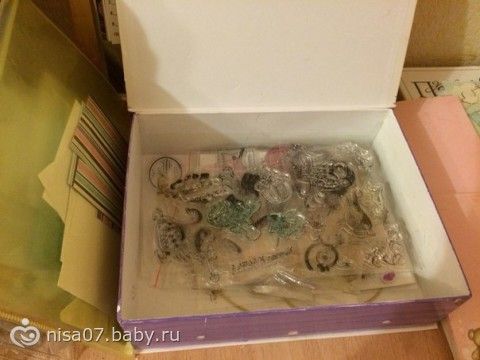 Рядом коробочка со штампами) многие наверное ее узнали из моих постов о декупаже))) одна из моих первых задекупаженных коробок))))