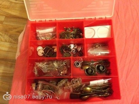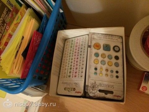 А! еще рядом забыла коробочку показать со стразиками и брадсами) вот только все содержимое не стала фотографировать( младший путался под ногами, их бы он точно потребовал)))