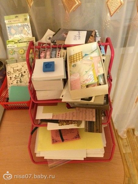 Рядом икеевская штучка для бумаги, на верхней тоже текущие материалы, во втором отделении остатки бумаги, их я на кармашки расходую и подложки, и в самом нижнем всякие распечатки))