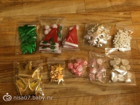 тут еще всякие штучки, которыми я планирую украшать мешочки для сладостей и еще заколки сделаю))