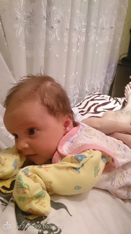Вчера нам исполнился меся=) Даже не верится, вроде бы вчера забирали ее из роддома, такую маленькую, а сейчас такая большая уже, лежит в кроватке агукает, ручки свои рассматривает, улыбается близким, держит головку, любит когда ставят столбиком и ходят с ней по квартире, переваливается на бочок=).Капризничает мало если написает в ползунки, то сначала крякает, чтоб внимание обратили и только потом может начать орать к ней подходишь, она сразу затихает, если хочет внимания побольше, то выплевывает соску и тоже крякает, и так будет до тех пор пока не возьмешь на руки)) кушает активно). Гулять одеваемся тихо, не кричим и не капризькаем)). Ну просто радость, а не ребенок… Уже не могу представить жизнь без своей картинки=)