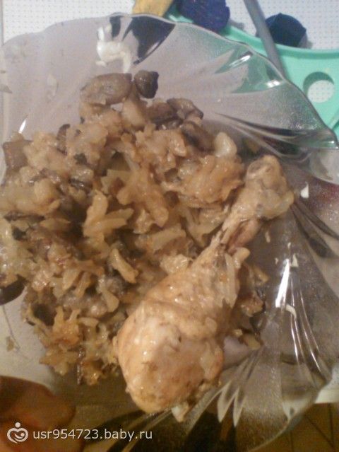 Ужин — голень куриная капуста тушеная с грибами шампиньонами, не знаю можно грибы на ужин или нет.