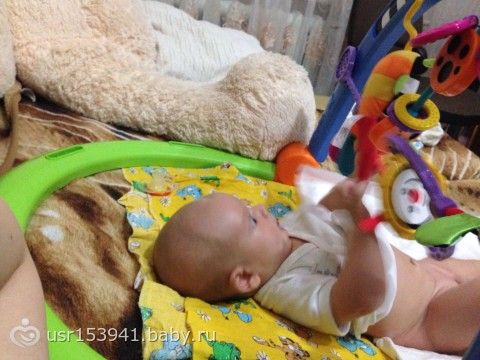 Спасибо))не, это от коврика божья коровка его оюбимая, он ее за крылья трепет), наблюдает за ними)это он столбиком уснул, а потом я прилегла с ним)