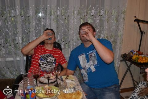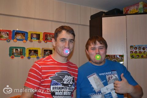 2. конкурс был для мужчин. Кто быстрее из детской бутылочки выпьет сок))) Победил папа)))