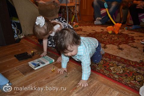 На полу разложили книгу, монету, ключи, конфету, кольцо и кисточку. Сава выбрал кисть, творческая личность будет)))