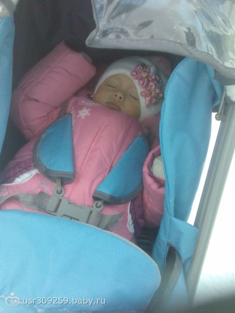 У моих саней есть ещё один беспорный плюс, помимо колёс, это спинка, принимающая положение «лежа» и очень глубокий капюшон, он полностью закрывает спящего ребёнка. Мои друзья купили такие сани для своего 1,5 месячного малышика(возят естественно лёжа), совершенно его там не продувает ни каким образом.