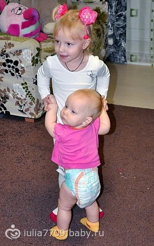 Начинает отрываться от опоры и стоять самостоятельно… если что то в руках… то может долго стоять… и садится теперь уже не просто ХЛОП на попу… а осторожно присаживается сначала и потом уже на попу)))) эх ну что ж все так быстро… куда торопятся дети....
