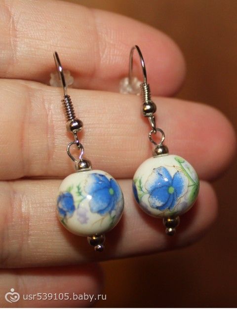 А еще сделала много красивых серег из керамических бусин с цветочным узором: