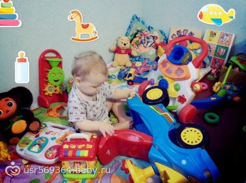 Вот это у вас игрушек!!! Мы мало покупаем, и не потому, что жалко — совсем нет, просто большинство из них одноразовые(( А вот мамиными девайсами на кухне, карточками, браслетами, коробочками. в общем совсем не игрушками можем играть долго))))