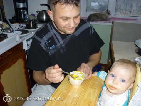 А это папа её кормит, а она крутится по сторонам, так он ей не всегда точно в рот попадает)))