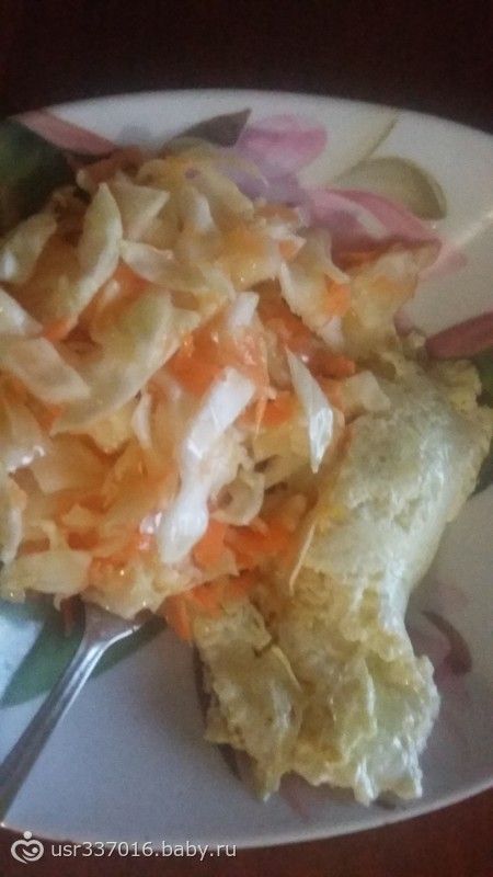 Ужин: Через час после тренировки омлет 100 грамм и салат 160 грамм из капусты и моркови.