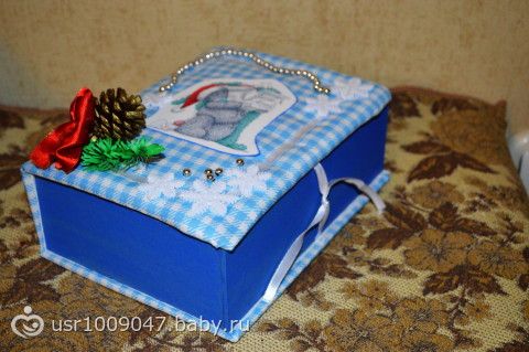 Привет, девочки! Захожу теперь редко… наконец-то появились заказы)) теперь ваяю ещё и шкатулки к НГ) под подарки и конфеты. Вот последний заказик