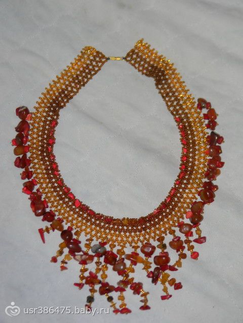 Одно радовало — удалось поработать с сердоликом и янтарем (все та же свекровь попросила сделать колье и отдала два ожерелья на растерзание) Излишки камешков остались мне, ну а она получила вот такое вот ожерелье (извиняюсь за качество, не я автор данного «фотошедевра»
