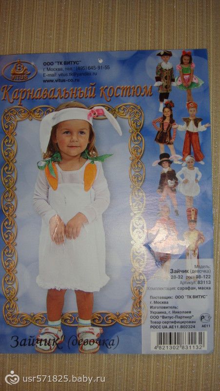 Оренбург. Продам новогоднее платье на девочку.224 ноября 2014 13:38 www.baby.ru/market/ad/337768044-prodam_novogodnij_kostjum__na_devotschku_zajtschik НОВОЕ.