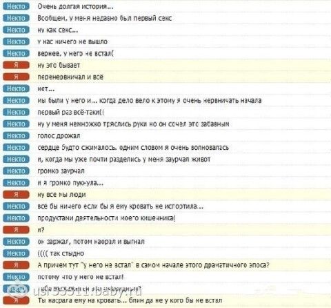 Ржака))) идиотизм но было смешно )))))))))) 25 ноября 2014 05:02 Комментарии Пожалуйста, будьте вежливы и доброжелательны к другим мамам и соблюдайте правила сообщества ПожаловатьсяСкопировать ссылку Невидимка Вероника10 лет Рудный ПожаловатьсяСкопировать ссылку Дарья принцесса9 лет Семипалатинск ржака ПожаловатьсяСкопировать ссылку Молодая Мамочка Елизавета10 летЕкатерина7 летАнастасия5 лет Омск хахаахха ПожаловатьсяСкопировать ссылку КоКоша Нель Кирилл23 годаНазар13 лет Ульяновск а виноват как всегда ОНПожаловатьсяСкопировать ссылку Ольга Горбачёва ВадимВикторович13 летСофияВикторовна10 лет Жезказган ага козел такой! Видите ли не встал у него!!! ПожаловатьсяСкопировать ссылку Llekssa Кирилл18 лет Ангарск последняя фраза вообще убилаПожаловатьсяСкопировать ссылку Ольга Горбачёва ВадимВикторович13 летСофияВикторовна10 лет Жезказган а предпоследнее предложение- ТЕБЕ НЕ КАЖЕТСЯ ЭТО ОЧЕВИДНЫМ? ПожаловатьсяСкопировать ссылку MaRiLaNoЧka Сергей20 летМилана14 лет Нью-Йорк ПожаловатьсяСкопировать ссылку Куся Вероника13 лет Екатеринбург ПожаловатьсяСкопировать ссылку ♥ღ๑●•·˙Лилька♥ღ๑●•·˙ Малинка14 летВкусняшка11 лет Пятигорск Предыдущая статьяДень рожденья мамы)Следующая статьяеще ржач)))))))))что то меня пробило сегодня))))Актуальные постымокдц на серпуховскойbugaboo дождевик