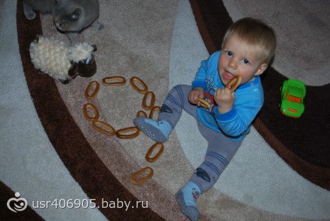 поздравляю а нам сегодня 9 мес, а сушки сам грызет не давиться, у нас 8 зубов я как то побаиваюсь давать, растите большие и здоровые, я как нибудь своего карапуза выставлю фотки, все как то некогда