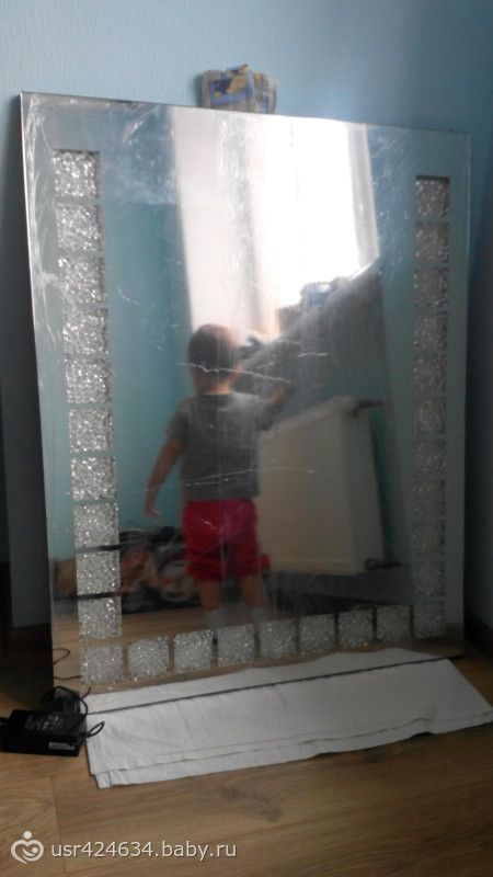зеркало стоит вверх ногами. оно с подсветкой, засыпаны кристаллы Сваровски