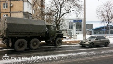 утром в 8 утра ехали по Мира, везли Дианку в сад, навстречу нам колонна военных грузовиков, все груженые чем-то. машин 10 не меньше… и тут один выворачивает нам на встречу… пьяный или уснул за рулем, не знаю...