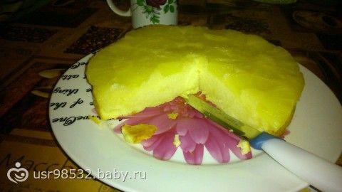 Растолстела я дальше некуда и решила сесть на диету! Но это дело надо отметить, и как же отметить начала диеты? Правильно! Надо испечь пирог, а тут как раз на днях кто-то из девочек выкладывал ананасовый, а я его давно планировала испечь, да вот что-то рецепты не цепляли. Муж оказался доволен))) Бисквит очень нежный, приятное сочетание с ананасом))))