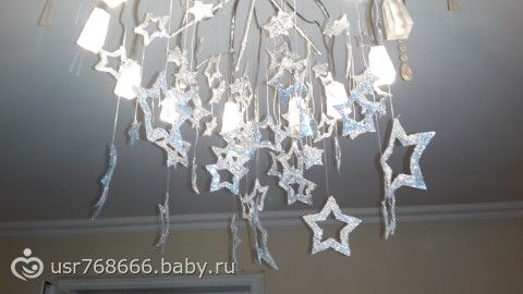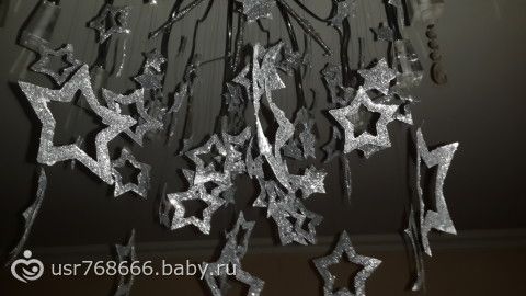 Снег… мандарины.… Пора наряжать елку!!! А не дают… говорят рано… но меня не остановишь ))) Моя подготовка к Новому году набирает обороты, ну не к одному празднику так не готовятся, как к этому ) Весь дом уже блестит, блестки везде, в глазах, в носу, в трусах у всей семьи))) а потому что меня заинтересовал мобиль из звездочек.… три дня сидела клеила и вырезала. Эти блестки вездееее!!!! И вот что получилось