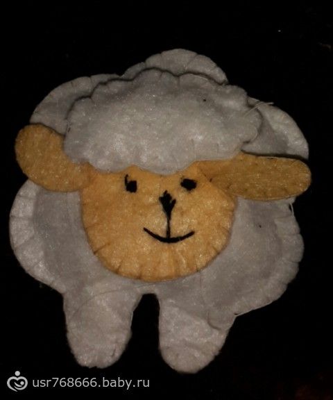 Еще попробывала сшить овечку из фетра. Получился вот такой магнитик, только вот нитки потолще бы...