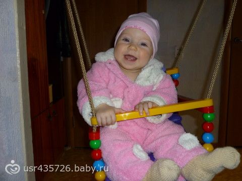 Наше небольшое достижение: Светланка стала без страха качаться на качели. Вчера хохотала во весь голос, когда я её катала на качели. Я её придерживаю, а то она на одну сторону заваливается, да и боюсь, чтобы не упала с качели.