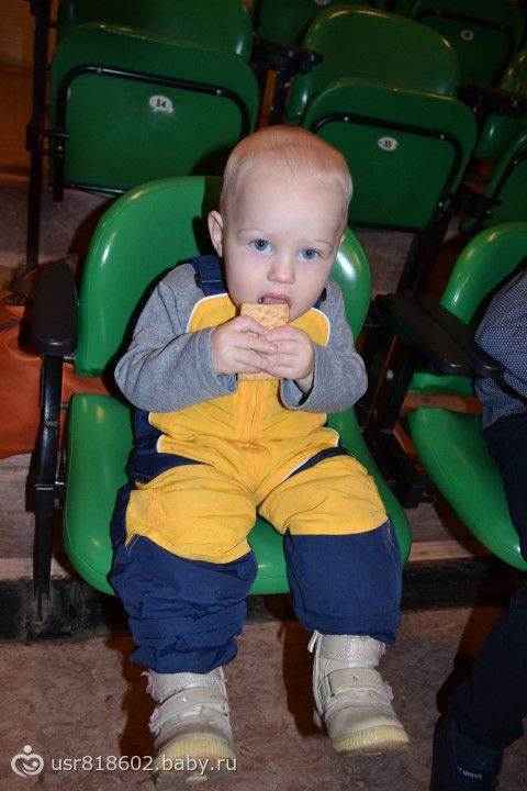 совершенно не испугался, очень даже понравились пляшущие девушки в ярких костюмах)) тётенька с дяденькой акробаты))) которые к его удивлению взлетели под купал цирка))) громкая музыка для нас норма, причем любит что то вроде РОКА))) ручками махал, пританцовывал и хлопал в ладоши)) но к сожалению уж очень мы не усидчивы и нам срочно понадобилось на арену))) как зовопил и пальчиком показывает пошли туда мол...))) ели досидели да антракта, завлекала как могла, благо сидели высоко))) ну вообщем впечатления остались приятные от первого посещения