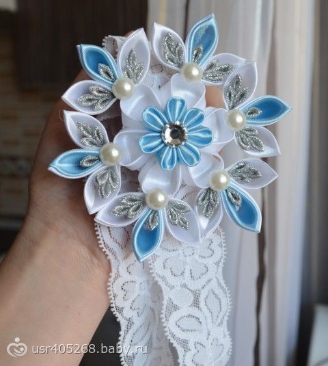 Юля ходит в садик, уже остаётся до 5 вечера, поэтому у меня появилось много свободного времени. На той неделе соорудила ей на утренник повязку со снежинкой канзаши. Очень хорошо получилось, мне прям нравится. Ещё хочу наделать ёлочных игрушек канзаши для себя и подарить подругам.