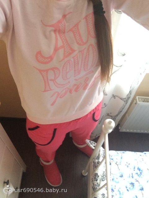 Дома я хожу обычно в майках и брюках, когда тепло шорты. Еще платья и сарафаны есть, вообще очень много домашней одежды, предпочитаю розовое все, тк дома люблю быть яркой.