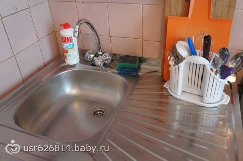 Раковина все еще блестит, вчера на ночь её протерла, чтобы утром она меня радовала)