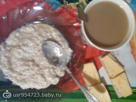Завтрак кашка овсяная, 2 хлебца с сыром, кофе с молоком