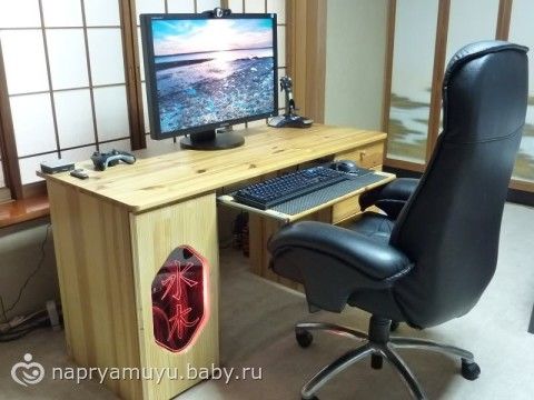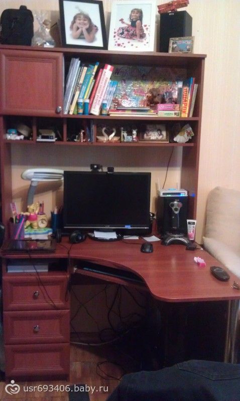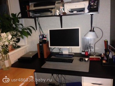 охх ненавижу эти полочки, по мне один пылесборнике и место для хлама))) след.комп.стол будет лаконичнее)))Умничка!