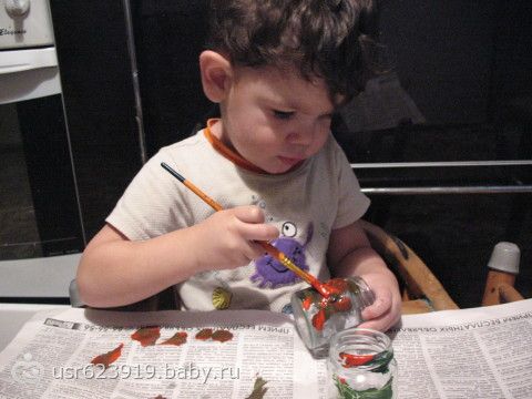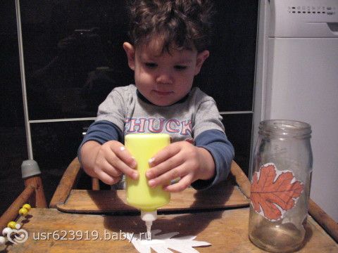 1фонарик- осенний фонарик, клеет листья из бумаги